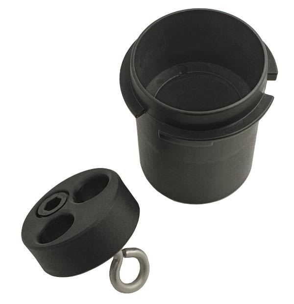 Sul lato inferiore è presente un golfaro, utile per assicurare i levelogger al Well Cap mediante un cavo (nel caso non si abbia la necessità di collegarlo con un Direct Read Cable per la lettura diretta) oppure per sospendere altri strumenti come per esempio pompe per campionamento.